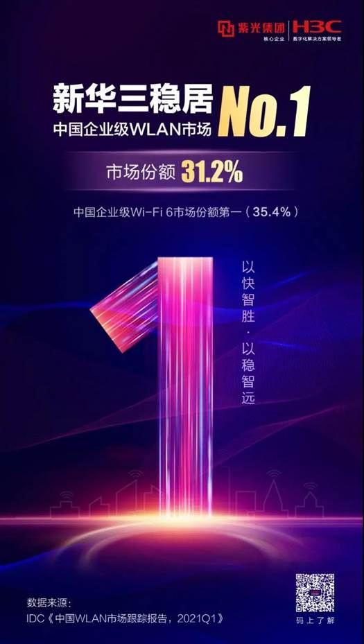 近日,根據(jù)國(guó)際數(shù)據(jù)公司(IDC)最新發(fā)布的《中國(guó)WLAN市場(chǎng)季度跟蹤報(bào)告(2021Q1)》顯示,紫光股份旗下新華三集團(tuán)以31.2%的市場(chǎng)份額穩(wěn)居2021年第一季度中國(guó)企業(yè)級(jí)WLAN市場(chǎng)第一。其中,在中國(guó)企業(yè)網(wǎng)WLAN、企業(yè)級(jí)Wi-Fi 6兩大細(xì)分市場(chǎng)新華三分別以31.3%和35.4%市場(chǎng)份額,雄踞第一高位。