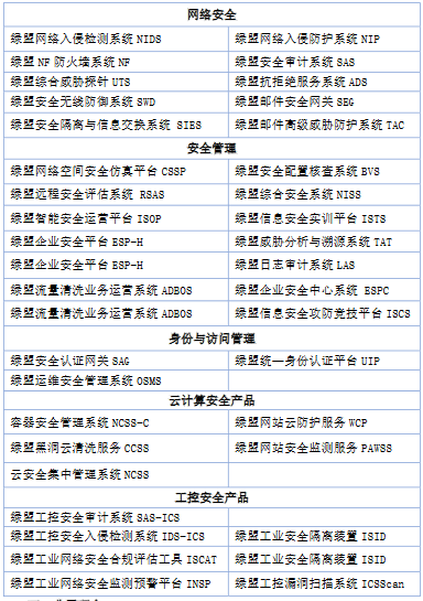 基于多年的安全研究,綠盟科技為政企用戶提供安全檢查與評(píng)估類(lèi)、安全檢測(cè)與防護(hù)類(lèi)、認(rèn)證與訪問(wèn)控制類(lèi)、安全審計(jì)類(lèi)、安全運(yùn)營(yíng)及管理類(lèi)等60余款高品質(zhì)安全產(chǎn)品,同時(shí)開(kāi)發(fā)出多款適用于云計(jì)算、工業(yè)控制、新型基礎(chǔ)設(shè)施建設(shè)、信息技術(shù)應(yīng)用創(chuàng)新等多